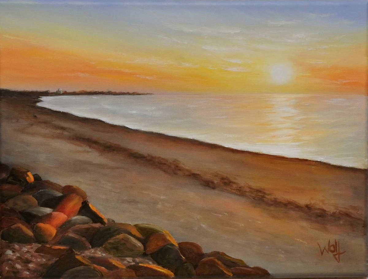 Sonnenuntergang am Strand von Hohenfelde, Ölfarben auf Leinwand 40 x 30 cm
