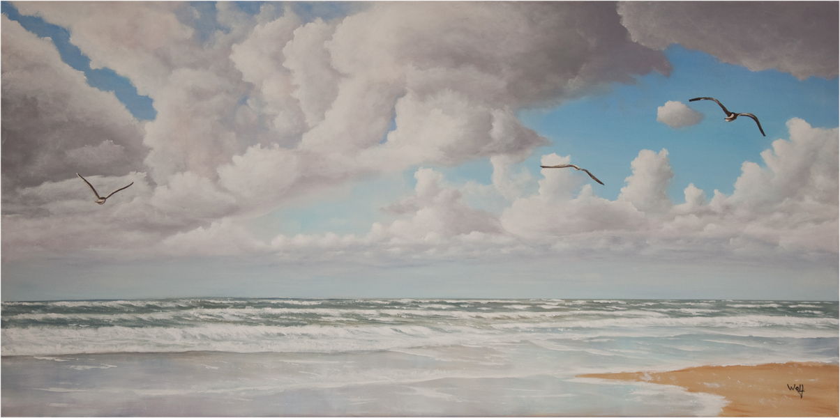 Strandabschnitt bei Hohenfelde an der Ostsee, Ölfarben auf Leinwand 80 x 40 cm.